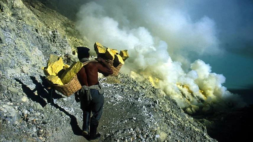 In the Donbass region of Ukraine, coal miners toil far below the surface of the earth, extracting carbon to heat their meager homes, selling anything extra for food. In Kawah Ijen, Indonesia, men scale treacherous mountain paths to the edge of a volcanic crater, where they harvest slabs of sulfur amid a putrid yellow fog. At an abattoir in Port Harcourt, Nigeria, workers toil in the harrowing task of slaughtering goats; in the Pakistani port of Gaddani, the pious yet poor deconstruct giant ships for scrap metal.